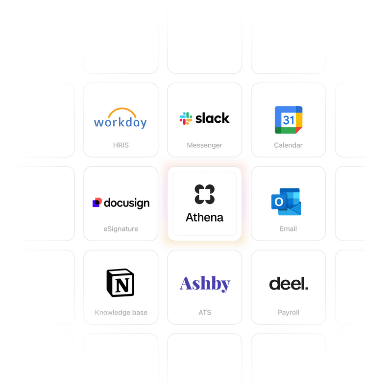 Athena doesn’t just remind, she executes. Updating HRIS, sending contracts for signature, scheduling calendar invites, notifying managers: all done across your existing stack.