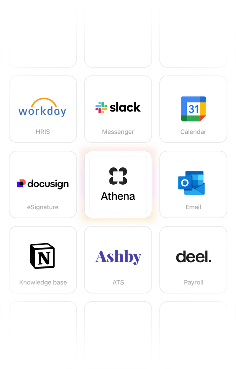 Plug Athena into Humaans, Workday, SAP, HiBob, Personio, BambooHR, or any other system in your stack. No switching required, just faster processes, fewer handoffs, and work that finishes itself.