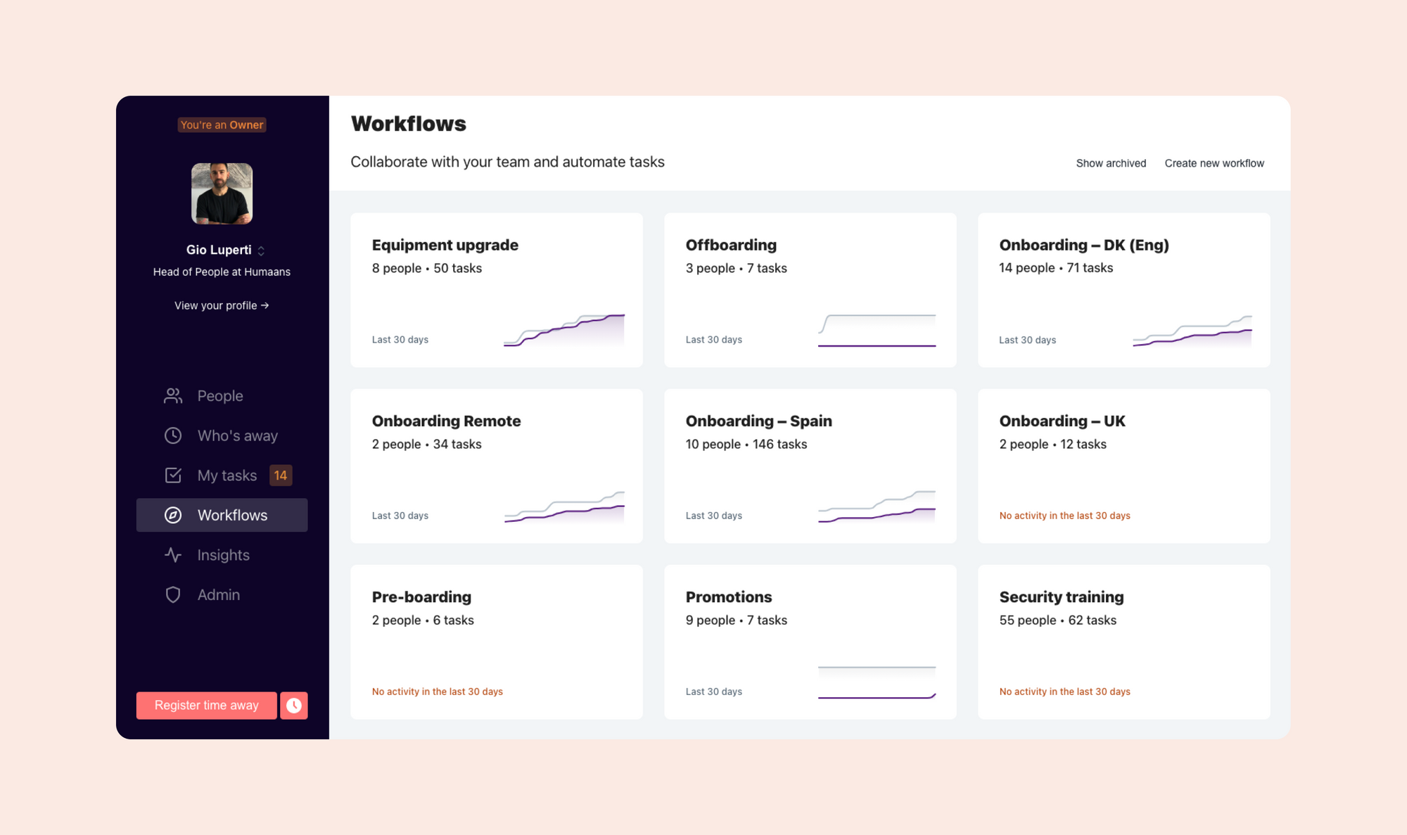 Product UpdatesNew in Humaans: WorkflowsDiscover the launch of Workflows in Humaans, designed to streamline HR processes and enhance operational efficiency across teams effectively.
