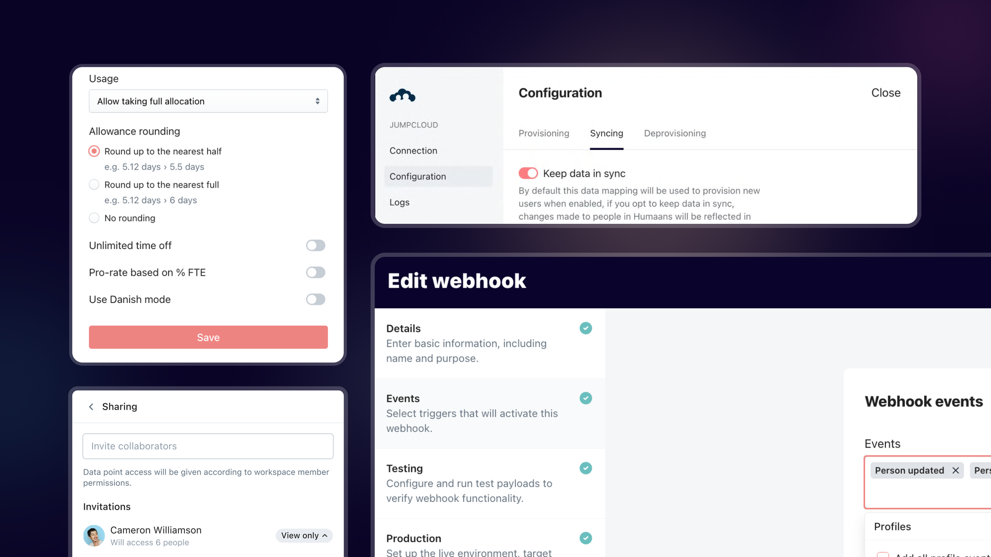 Product UpdatesProduct Update: Tables Sharing, Webhooks, New Workflow Triggers, JumpCloud Provisioning and more.Learn about our latest features and improvement to the Humaans platform.