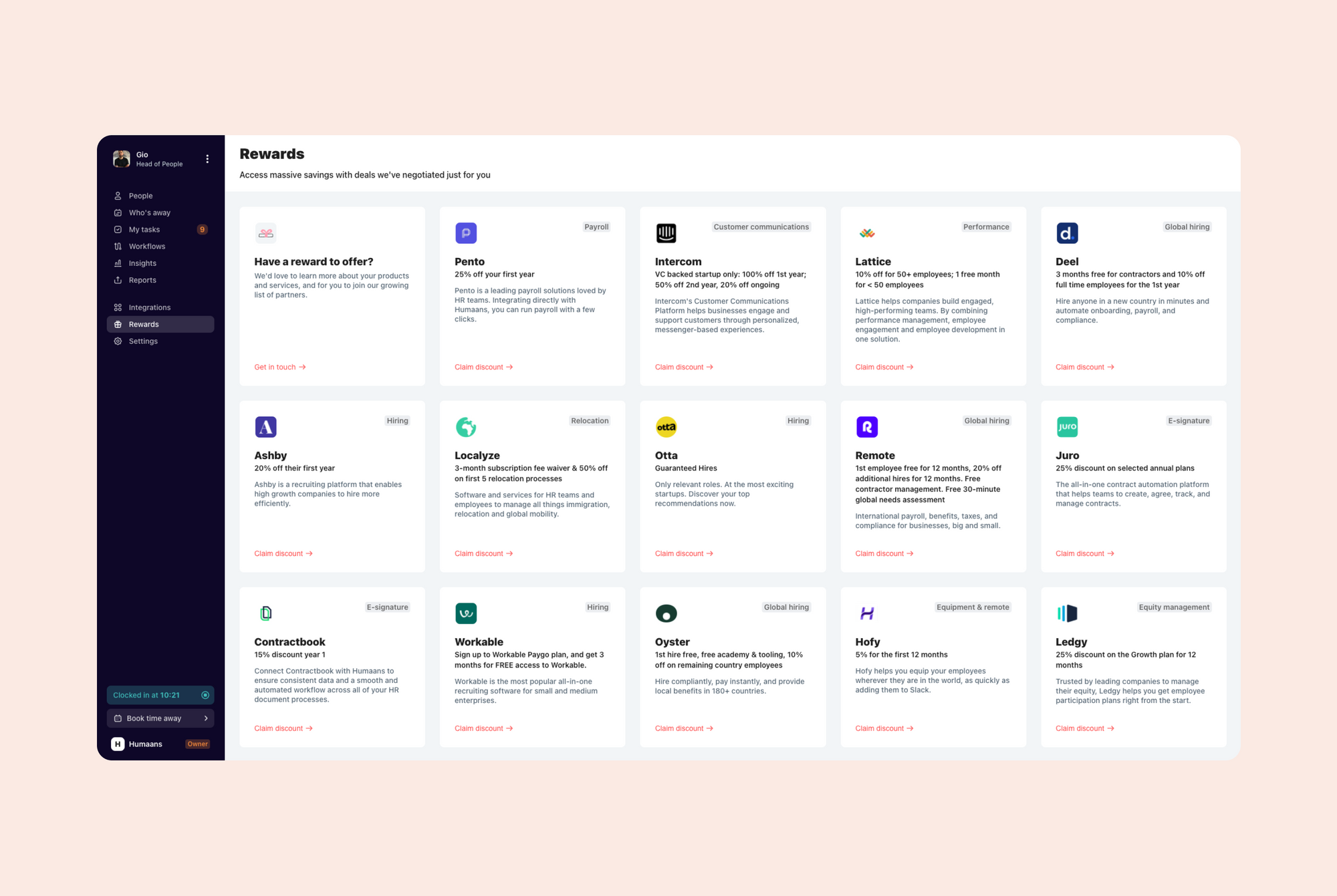 PartnershipsHumaans Rewards MarketplaceAccess savings with Humaans Rewards Marketplace, offering deals and partnerships to enhance customer value and organizational growth effectively.