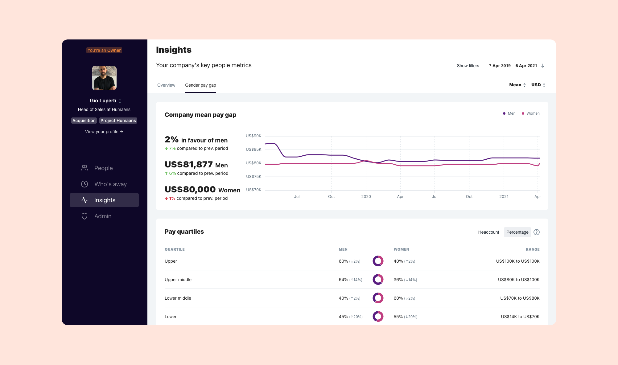 Product UpdatesNew in Humaans: Gender Pay Gap ReportingAnnouncing Gender Pay Gap Reporting in Humaans, helping organizations identify disparities and promote equitable compensation practices.