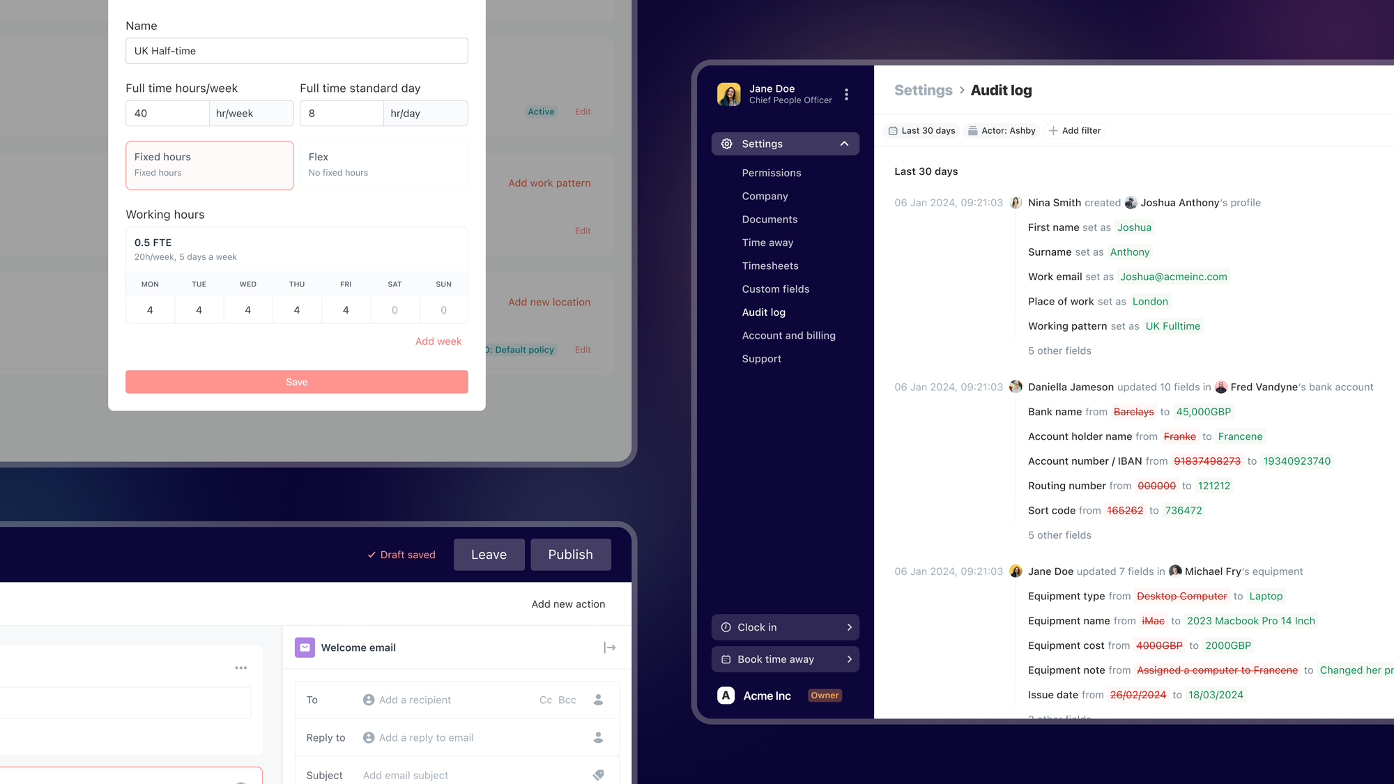 Product UpdatesProduct update: Custom Working Patterns, Workflow enhancements, Audit Log update and more integrationsLearn about our latest features and improvement to the Humaans platform.